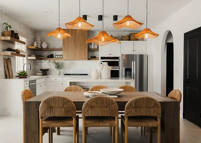 Located approximately a 10-minute drive from the Fantasy Springs Resort Casino, Indah - Chic Paradise In Coachella Valley villa offers a patio with views of the mountain. Offering a private swimming pool, the Coachella holiday home invites guests to visit the Shields Date Garden, located around 7 km away.